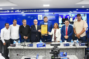 A homenagem, proposta pela vereadora Socorro, simboliza o reconhecimento institucional pelo apoio e dedicação demonstrados ao município.